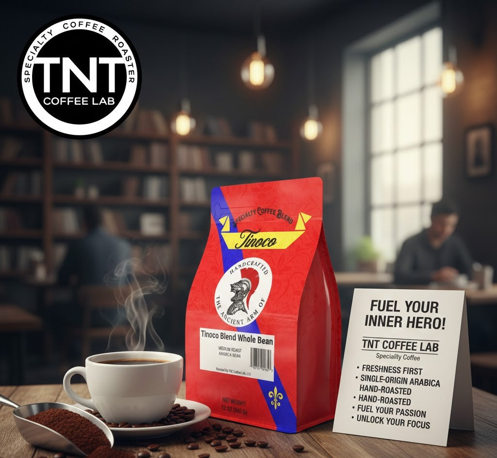 Indulge in the rich, robust flavor of our 12oz ground or Whole Bean Tinoco Coffee Blend. Specially hand crafted with the finest coffee beans, this medium roast blend is perfect for coffee lovers who crave a bold and smooth taste. Start your day off right with our Tinoco Coffee Blend!